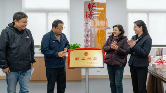 李学初副主席、校工会常务副主席金梅、数统公司书记黄江英共同为公司省级职工书屋揭牌。随后,李副主席向职工书屋赠送书籍,鼓励公司工会充分利用好这一平台,不断拓展书屋功能,推动教职工阅读活动的深入开展,努力打造一个充满书香气息的教职工文化阵地。